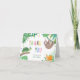 Cute "thank you card" with slow animals and tropical leaves and flowers! Features adorable, hand-painted sloth, turtle and snail hanging out in the jungle among colorful tropical flowers.