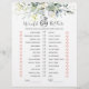 Would She Rather Bridal Shower Game. This design features an illustration of eucalyptus foliage and golden leaves in watercolor style. On the top of the card - gold effect confetti. The texts "Would" and "Rather" are written in script font.