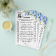 Blue Flowers Would She rather Bridal Shower English and Spanish version game included (front and back). Change wording for English and Spanish versions. For additional customization (change question and other wording, font color, font style ), click on personalize, scroll down and click on the link "click to customize further".