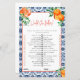This fun summer bridal shower game has a Italian Aperol Spritz theme with citrus accents. The front illustration is a watercolor Aperol spritz with hibiscus and fruit toppings. The back is a matching watercolor orange slice pattern with a minimalist white background. It is fun and whimsical, perfect for summer cocktail bridal showers.