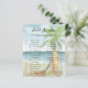 Baby on Board! Baby shower invitation - perfect for a summer baby shower. Beach theme. Watercolor design has a ocean and beach scene with surfboard, palm tree and summer hat.