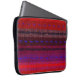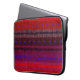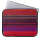 This laptop sleeve features an image of a colorful abstract pattern of woven horizontal bands. The brilliant colors of red, purple, blue and black seem to glow. You can add text if you wish.