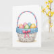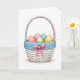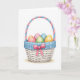 Designed with a light wicker basket centered on a plain white background, this illustration feels calm and inviting. A sky-blue checkered fabric liner folds over the rim, adding a cozy, shared-at-home touch, while a rose-pink ribbon bow at the front looks like it was tied with someone special in mind 🌷. The arched handle curves overhead and is wrapped in candy-like stripes that alternate soft blue and pink, giving the top a sweet, friendly rhythm. Tucked inside are five pastel eggs in coral, mint green, sky blue, soft yellow, and lilac, arranged close together like a small group leaning in for a photo 🐰. Each egg has tiny white blossoms and dotted accents that suggest careful attention and a gentle, affectionate mood. Soft shadows under the basket and along the weave add depth without making the scene feel heavy. No text appears anywhere, leaving the focus on the pink bow, the striped handle, and the cluster of patterned eggs against the white space.
