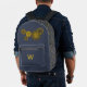 This design features a set of clockwork gears embellished with Celtic weaves on the sides and teeth. Great for bringing a subtle bit of Steampunk in your everyday life. Customize the initial on the front pouch of this backpack with your own monogram to make this accessory uniquely yours.