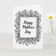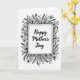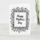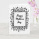 Designed with a centered rectangular panel, this Mother’s Day card features the words “Happy Mother’s Day” in flowing black lettering that feels like a gentle note shared with ❤️. The text sits neatly inside the frame, making it the main focus while leaving a slim white margin around it. Encircling the panel is a lush ring of stylized leaves, fronds, and small buds that lean inward as if offering a quiet, caring embrace. The black-and-white palette keeps the look crisp and timeless, with fine linework and light texture that suggests an ink-drawn illustration. Small circular dots are sprinkled through the foliage like soft confetti, adding a light touch without stealing attention from the message. The overall layout feels intimate and friendly, like a warm exchange between loved ones 🌼. Tiny scattered circles appear between the leaves, floating against the white background.