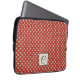 Simple yet decorative, this design of graphically woven rattan adds the personal touch to your laptop sleeve! The main color is red, and the solid cream colored background can be recolored by you. Change this product's base color to play with new effects! The custom initial is placed on a light square with black border. Text can easily be customized, and the entire monogram can be repositioned or removed. Also text font, size and color can be adjusted.