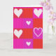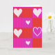 This design shows a grid of red and fuchsia squares across the front, each square marked with faint vertical lines that look like woven fabric. White hearts sit inside many of the squares, with a few large ones and several smaller ones scattered around. The hearts have slightly stepped edges, like a pixel-style pattern, which gives the card a cozy, throwback feel. One heart is shown only as a white outline instead of being filled in, adding a sweet little pause in the pattern, like love still growing. There isn’t any text on the front, so the hearts and colors do all the talking. It feels meaningful to give because it’s simple, warm, and says “I care about you” without needing a lot of words 🥰. It works for romance or close friendship, and it’s easy to imagine the person smiling when they open it ❤️. Hope it helps you share Valentine’s Day sentiments with someone you love.