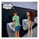 Two people are in a men's restroom, observing each other using the urinals, with one wearing a short dress and looking very much like a female. One with a thought bubble that says, "WOW that's unexpected."