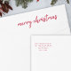 A simple and stylish “Merry Christmas” wrap around address label featuring modern minimalist typography in deep red. Designed for a sleek, contemporary look, this label wraps neatly around your envelope to display your name and return address on one side and the recipient’s details on the other. Personalize it easily for a cohesive and elegant finishing touch to your holiday cards, invitations, or thank you notes. This modern design coordinates beautifully with our matching Christmas card collection for a polished, professional presentation. Perfect for adding festive charm while keeping your mail organised and stylish, this custom wrap label makes holiday correspondence both practical and beautiful.