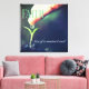 This wrapped canvas wall art is graced by a photograph of a tender green seedling springing forth from out of the earth. A gentle human hand with a drop of dew over the top of the green seedling with a caption in upper corner of "Faith" with text of "size of a mustard seed" near bottom. Green tones. Customize or buy as designed.