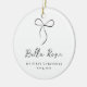 Celebrate a baby's first Christmas with our personalized ceramic ornament. This on-trend photo ornament features an on-trend line drawing of a chic black bow. The back holds a special photo, making it a cherished keepsake for years to come.