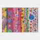 This wrapping paper is covered with an abstract design filled with stripes, polka-dots, and sparkles.