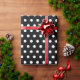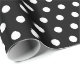 Gift wrapping paper shown in a cute black and white polka dots print, shown in glossy.