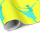 Green, blue ballerina silhouette on a yellow background with Happy New Year and wishes on her , special wrapping paper.