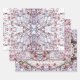 Three abstracted cherry blossom mandala designs that are elegant and suggestive of stained glass or Persian carpet patterns.