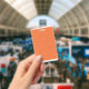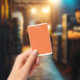 Wrapping paper featuring a pattern with orange, re badge