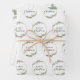 Wrapping featuring a minimalist watercolor wreath with red floral and green foliage accents. This elegant wreath frames the greeting "Merry Christmas". 2nd sheet is a gold pin-stripe pattern. 3rd sheet is watercolor greenery with a sage pin-stripe in the background.