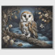 Cute Wrapping Paper Flat Sheet Set of 3 Owl on Branch in Moonlight
