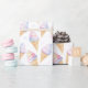 Wrapping Paper for birthday with sweet and delicious ice cream, drawn in soft pastel colors in watercolor style.