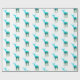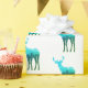 This gift wrapping paper is shown in white with a heard of blue to green elk/deer with their antlers. repetitive print.