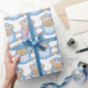 Unique celebration of the birth of a baby boy wrapping paper.