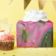 Wrapping paper with open hot pink tulips that have been digitally enhanced.