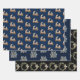 Holiday paper created from images of original hand-crafted designs with natural oysters from the artist's local beaches. One sheet each of a sweet delicate nativity scene with a midnight blue background; holly and grapevine wreaths with an angel cross oyster design; and an oyster modern art design with silver/steel magnolias on a blue background.