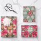 Set of 3 coordinating Christmas wrapping paper sheets in an abstract floral design. The design features Christmas roses, stars and berries in an abstract, modern style.