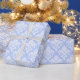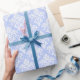Original damask is actually a type of fabric which uses various weaving techniques and various threads to create alternating sheens resulting in a tone-on-tone design. In original damask, the pattern was actually woven into the fabric, making the fabric reversible. A more modern adaptation would be the fabrics created on Jacquard looms. These machined damasks were less expensive and succeeded in bringing this more affordable damask to the middle class. This design is a salute to that thousand-year-old art of damask weaving. The white flourish is a crisp contrast to the wedgwood-esque blue backdrop. This lovely wrapping paper is an excellent choice for weddings, anniversaries, baby showers . . . virtually any elegant occasion.