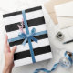 This is an elegant wrapping paper that could be used for any occasion. It features a black and white stripes.