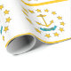 Crafted with meticulous attention to detail, this wrapping paper is more than just a cover; it's a celebration of Rhode Island's rich history and state pride. The flag's iconic design with its white field, gold anchor, and blue ribbon bearing the word "Hope" symbolizes the state's maritime heritage and enduring optimism.
