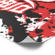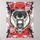 This design is of a ferocious panda head with a skull emerging from its open mouth. The pandas mouth is open showing its teeth giving off a menacing vibe. The background is a mix of splashes of red paint with black splatters. There is the kanji symbol for beast.
