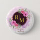 Wreath Floral Initial Letter Monogram Name Marble Button