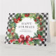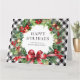 Wreath Holly Berries Black Plaid Business Holiday Card