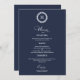 Wreath Monogram Wedding Menu Cards Navy blue
