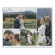 Romantic faux canvas to which you can add four of your wedding photos in different dimensions with your initial inside a berry wreath in the bottom right corner. Photo collage faux canvas personalized with wedding photos and monogram.