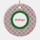 Wreath Monogram Your Name Red Snowflakes Silver Ceramic Ornament