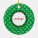 Wreath Monogram Your Name White Snowflakes Green Ceramic Ornament
