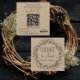 Wreath Vines Handmade | Handcrafted Kraft Business Card -- Features leafy wreath vines formed into a wreath on the front of the card, along with your business name and website address. On back is a customizable QR Code along with your other business details. The bottom right features a variety of social media icons--you can use these for this purpose, swap them for icons of your choosing or delete them altogether. All colors, text and backgrounds are editable.
