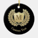 Wreath and shield icon. Custom background color. Custom monogram. Custom text on both sides.