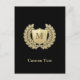 Wreath and shield icon. Custom background color. Custom monogram. Custom text on both sides.