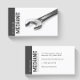 Wrench Mechanic Business Card has a minimalist design of a wrench photo on a white background with a black strip on the left side where the typography business name and profession or service is positioned.