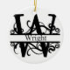 Lightweight, smooth, pure white ornament with nice sheen. Perfect size to be seen from across the room ... and to attract closer inspection! Price was great for ordering enough for the whole family! Clear, bold black design just as requested. Matches the order exactly. Just so nice!