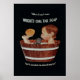 A very cute advertisement for Wright's Coal Tar Soap showing a little boy taking a bath in a half barrel. Poor little guy barely fits and has to balance the bar of soap on the soles of his feet! A gorgeous poster for your bathroom. Note: enlarging this image may result in a poor quality print.