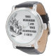 Wrist watch with Alice n wonderland motive of a white rabbit with writing that says "The hurrier I go the behinder I get!"