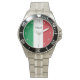 Steel Wrist watch for men with flag of Italy. Stylish watches with flag of Italy. Patriotic tricolore design. Cute gift idea for proud Italian dad uncle grandpa brother etc. Personalizable text.