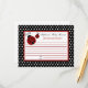 These adorable Red Ladybug Writable Advice Cards are perfect addition to any baby shower or birthday party. Simply hand these cards to your guests, along with fine tip Sharpie pens. Your guests can then write down any advice they have for the new mommy to be or for the birthday boy or girl. These are printed at a 4.25" x 5.6" size on glossy ultra heavyweight 120 lb. cover stock (card stock). We have an entire line devoted to this design here at zazzle store under the * Design Collections menu tab to include invitations (5x7), Return Labels, Mailing Labels, Envelope Seals, Postage Stamps, Cup Cake Picks, Water Bottle Wrappers, Hershey's 1.55 oz. Large Bar Wrappers, Hershey's Miniature Stickers, Microwave Popcorn Bag Wrappers, Writable Place Cards, Goody Bag Toppers, FLAT Thank You Cards (4x5), FOLDED Thank You Cards (4x5), Favor Tags, Menu Cards, Mint Matchbooks, Lollipop Covers, Bookmarks, Bingo Cards, Bingo Card Markers, Bingo Card Call Out Sheets, Writable Advice cards (4x5), etc.