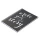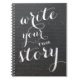 "Write your own story" in this lovely journal sized notebook that incorporates trendy hand lettered text and feminine details with a background of vintage cursive written parchment in black and gold.