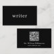 Writer Modern Black QR Code Business Card. Black business card with white text. Front sample text writer, back features customizable QR Code (Add your own url), name and website (or other text. All text, fonts and colors are customizable. Full color full bleed printing. We invite you to visit our Zazzle store, Bookles, for matching products and more. Please contact us if you require any assistance.