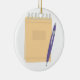 Lightweight, smooth, pure white ornament with nice sheen. Perfect size to be seen from across the room ... and to attract closer inspection! Price was great for ordering enough for the whole family! Clear, bold black design just as requested. Matches the order exactly. Just so nice!